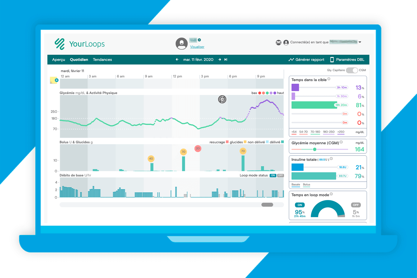 Un outil pour visualiser toutes les données collectées par le DBLG1® System. Partage possible avec l’équipe soignante et les proches.
